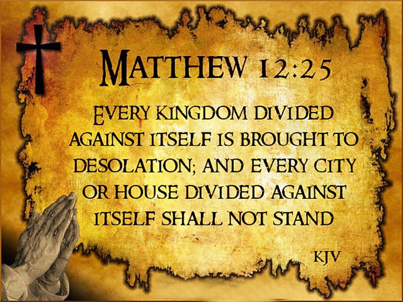 Year-End 2025Matthew 12:25 (HCSB), “Knowing their thoughts, Jesus told them: ‘Every kingdom divided against itself is headed for destruction, and no city or house divided against itself will stand.’”