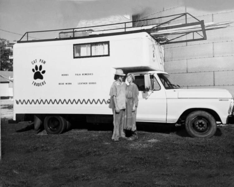Sage has been used for a very long time as a room freshener. It does eliminate odors and seems to cleanse the air. It was a beautiful warm day and we had the back doors of the truck open. The loading ramp for the truck was extended and the far end was supported by a metal stand. This creates a very convenient and stable worktable. We tie a display to the end of the ramp. We have done this many times. It is tied solid, so if a wind comes up it will not blow the display over.